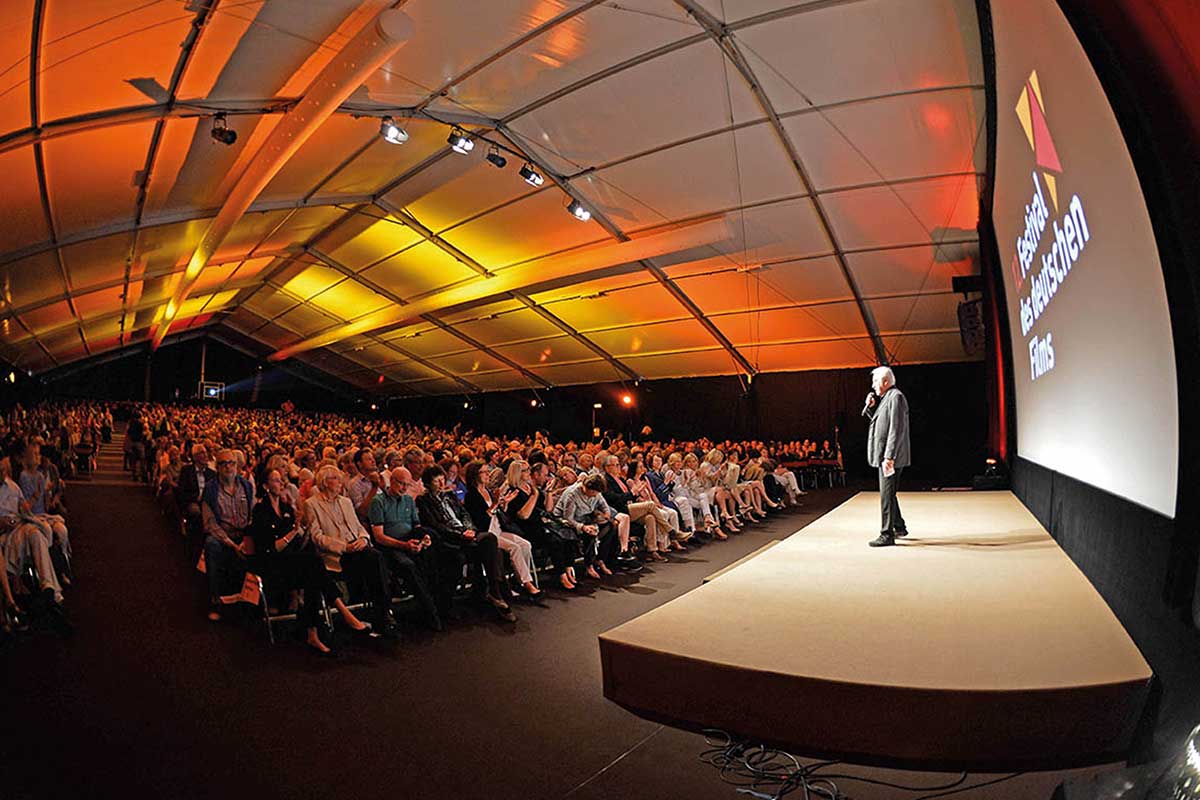 Mitten in der Natur bietet das Festival damit auch eine Kulisse für die Filmkunst, die ihr ähnlich sieht. Denn der Film lebt davon, dass seine Kunstform selbst immer so wirkt, als sei es natürlich echt, was man da sieht — so natürlich wie im wirklichen Leben. Wenn Sie als Besucher also aus dem Kino kommen, sind Sie vielleicht noch gar nicht draußen, sondern noch mitten drin im Film. Deshalb wollen Sie auch noch nicht nach Hause — Sie verweilen am Rheinufer, vielleicht im Liegestuhl, vielleicht mit einer Weinschorle oder einem Picknickkorb oder Sie warten gespannt auf die Ankunft der Stars oder wollen ein Ticket kaufen für die Premieren in den beiden riesigen Kinosälen, die beide über mehr als 1.200 Sitzplätze verfügen. Kann auch sein, Sie warten auf das anschließende Filmgespräch, um mit den Filmkünstlern ins Gespräch zu kommen, so nah und so menschlich wie sonst nie. Denn das macht dieses Festival auf der Parkinsel so einzigartig: eine warmherzige Atmosphäre, die auch die Filmgäste spüren und die dafür sorgt, dass diese Gäste jedes Jahr aufs Neue wiederkommen. Der Film muss für die Menschen da seinDas kann nur Liebe sein, wenn Hunderte von Menschen in einem großen Saal sich auf ein und denselben Augenblick konzentrieren. Und trotzdem genau wissen, was sie wollen. Denn so wichtig wie die Stimmung des Ortes ist die Qualität der Filmgeschichten, die erzählt werden. Der deutsche Film muss für die Menschen da sein, nicht umgekehrt. Kommerzielle Gesichtspunkte müssen zweitrangig sein. Nicht nur das Kino muss erhalten bleiben, auch ein qualitativ hochwertiges Fernsehprogramm, das den deutschen Film ebenfalls tatkräftig fördert. Hauptsache, es lohnt sich überhaupt, einen Film anzusehen. Als einziges Festival in Deutschland wird in Ludwigshafen da kein Unterschied gemacht und alle Verwertungsschienen des deutschen Films werden gleich ernst genommen, wenn es um die Filmkunst in Deutschland geht.Treffpunkt „Inselgespräche“Wir wollen beides: die Filmkunst und den richtigen Ort. Die Kombination von Kultur und Natur — und das in der Industriestadt Ludwigshafen am Rhein — macht dieses Ereignis zu einem Publikumsfestival, das im vergangenen Jahr 120.000 Besucher zählte und von dem alle schwärmen — auch in der Fachwelt: Das Festival des deutschen Films ist mit seinen „Inselgesprächen“ zu einem lebendigen Treffpunkt der Regisseure, Produzenten, Verleiher, Schauspieler geworden — bestimmt von dem Wunsch, herauszufinden, was er (wieder) braucht, der deutsche Film. Das Festival an diesem „magischen Ort“ ist ein Inbegriff der Verbundenheit von Natur und Kultur — weshalb es niemanden verwundert, wenn dieses Arrangement auch den ganzen Veranstaltungszeitraum verändert. Weil das ständige Hochwasser im Frühsommer oft bis an die Zeltwände reicht, wird jetzt in sanfter Anpassung ausgewichen in trockenere Jahreszeiten. Damit die Besucher nur noch in die Tiefen der Leinwand eintauchen — vom 30. August bis 17. September, auf dem 13. Festival des deutschen Films auf der Parkinsel in Ludwigshafen am Rhein.“ ‹
