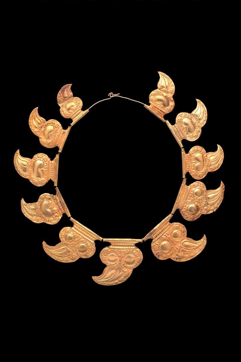 › Der Schatz der Nibelungen, die Liebespfeile Amors, die vom Himmel fallenden Sterntaler bei den Brüdern Grimm. Sie alle waren aus Gold. Unzählige Beispiele ließen sich noch finden, denn kaum ein anderes Material weckt mehr Begehrlichkeiten, ist mythenbeladener und symbolträchtiger als das glänzende Edelmetall. In jeder Hochkultur hat es einen festen Platz und steht nicht selten für das Göttliche selbst. Auch auf der Vulkaninsel Java war Gold einst ein Ausdrucksmittel gehobener Schichten und Würdenträger: Über ein Jahrtausend hinduistischer und buddhistischer Herrschaft haben auf der Insel goldene Spuren hinterlassen, die in der Schau „Javagold — Pracht und Schönheit Indonesiens“ entdeckt werden können. 400 einzigartige SchätzeMeisterhafte Schmuckwerke, beeindruckende Insignien und prunkvolle Kunst- und Kultobjekte verliehen Java einst einen Glanz, wie man ihn dort heute kaum noch vermuten würde. Zumal es vor Ort derartige Bodenschätze gar nicht gab: „Bis heute sind weder prähistorische noch moderne Goldminen bekannt“, berichtet Dr. Sarah Nelly Friedland, Kuratorin der Schau. „Nach geologischen Erkenntnissen gibt es auf Java keine nennenswerten Goldlagerstätten. Das bedeutet, dass die javanischen Herrscher ihren Goldbedarf durch Handel und Einfuhr aus anderen Gebieten decken mussten.“ Und der Bedarf war groß, wie die zahlreichen Funde zeigen. Die Mannheimer Schau vereint allein rund 400 einzigartige Schätze aus dem 7. bis 15. Jahrhundert. Ein Großteil der aus einer Privatsammlung stammenden Kostbarkeiten ist erstmals öffentlich zu sehen.
