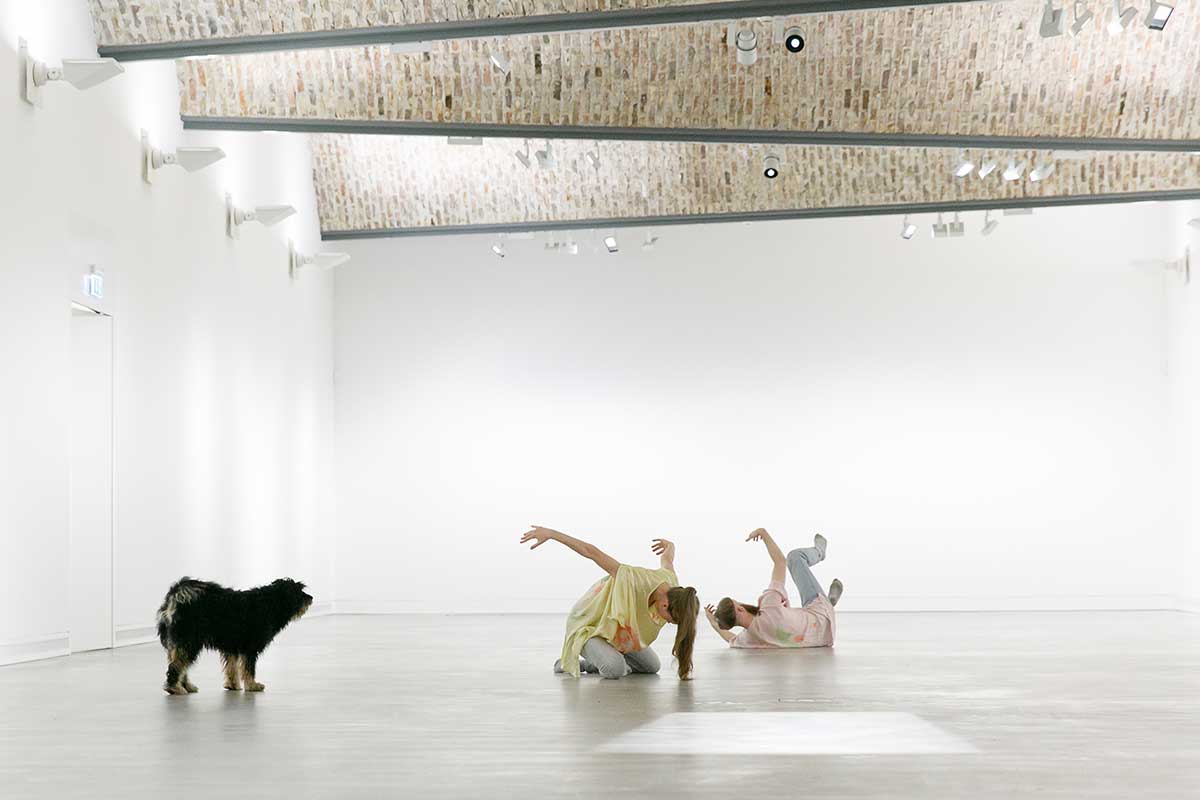 Ausgehend von Theorien der Philosophin Donna J. Haraway betrachten die von BASF Tor 4 geförderte Ausstellung und die dazugehörige Publikation den Wandel im Verhältnis zwischen Mensch und Tier in zahlreichen Arbeiten internationaler Künstler*innen. So performt das Künstlerduo Krõõt Juurak und Alex Bailey speziell für Hunde, um ihnen Aufmerksamkeit für ihre tägliche Care-Arbeit zurückzugeben. Der Schwede Erik Bünger hinterfragt unser Verständnis von Sprache, indem er ein Video der mit Gebärden kommunizierenden Gorilladame Koko künstlerisch analysiert. Und David Horvitz lädt dazu ein, mit Krähen ins Gespräch zu kommen. „Auf vielfältigen Ebenen werden der Paradigmenwechsel im Tier-Mensch-Verhältnis reflektiert und Fragen nach unserem Zusammenleben im Post-Anthropozän mit künstlerischen Arbeiten in den Raum gestellt“, verrät Thiemann. Humorvoll, sinnlich und tiefgreifend werden wissenschaftliche Erkenntnisse mit geisteswissenschaftlichen Haltungen verbunden und in Beziehung zu künstlerischen Arbeiten gesetzt, die für ein respektvolles Miteinander plädieren und Tiere als denkende, fühlende und mit uns sprechende Gefährt*innen begreifen. ‹Denken wie ein Oktopus, oder: Tentakuläres Begreifen