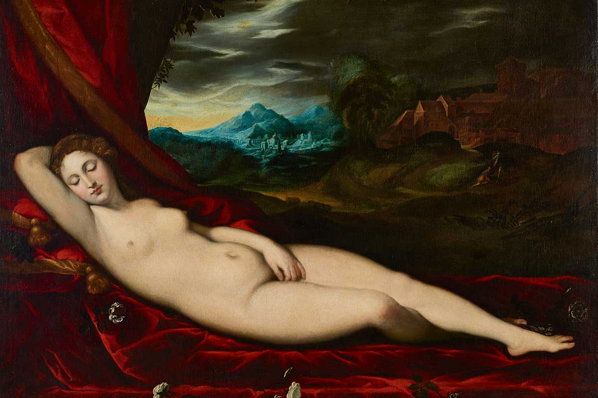 • Tizian-Nachfolge: Schlummernde Venus, 1580/1600, Öl auf Leinwand, Hessisches Landesmuseum Darmstadt © HLMD, Foto: Wolfgang Fuhrmannek