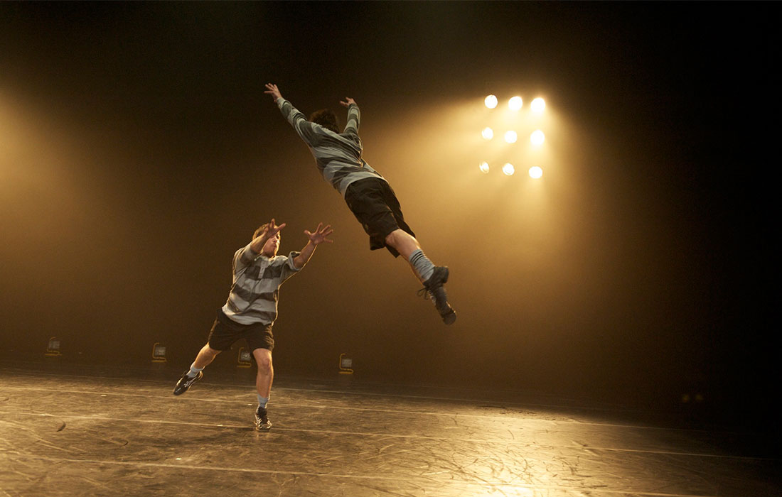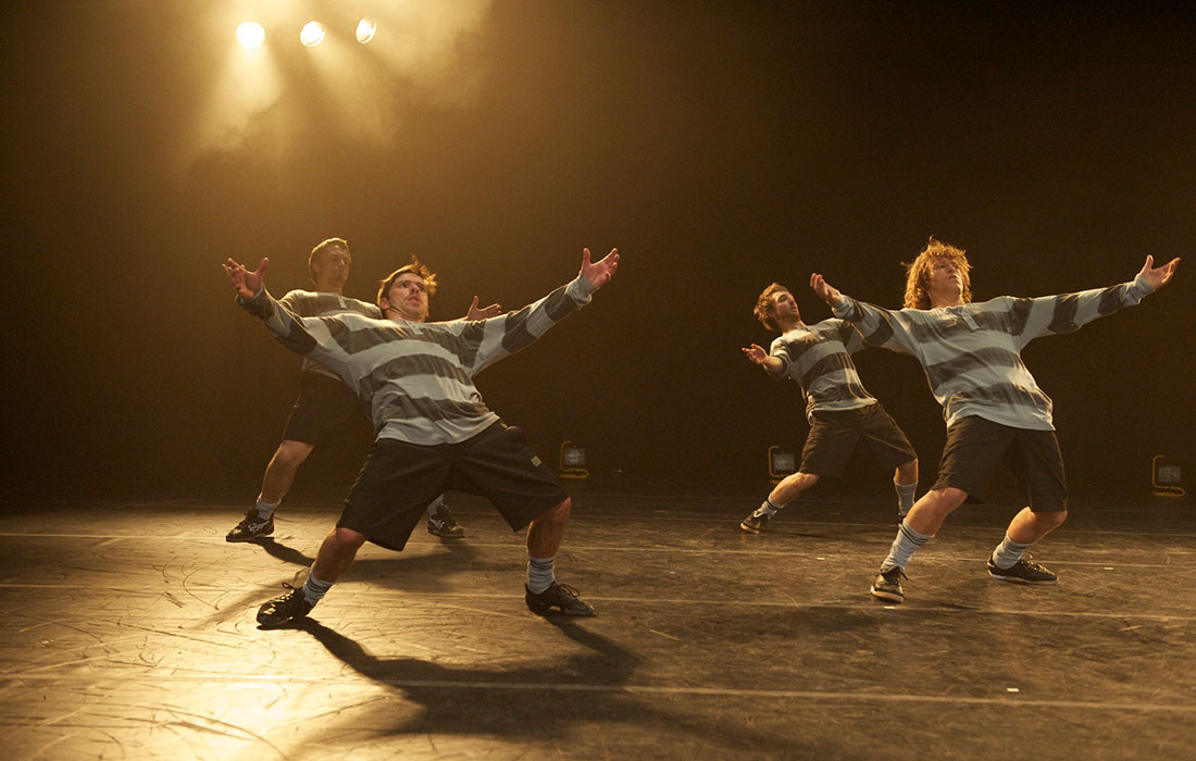 › Torjubel, taktische Fouls und die Tücken des Balls — der norwegische Choreograf Jo Strømgren hat mit „A Dance Tribute to the Art of Football“ eine Hommage an die schönste Nebensache der Welt geschaffen. Das Tanztheaterstück widmet sich nicht nur der Technik des Sports, sondern auch seinen Ritualen und seiner Ästhetik — und bietet den Zuschauern gleichzeitig ein Wechselbad der Gefühle und Stimmungen. Denn während die Akteure unter martialischem Hardrockgetöse ihren Teamgeist und ihre Stärke beschwören, scheinen sie wenig später, begleitet von Opernarien, elegant und fast ätherisch zu schweben. Die Produktion entstand anlässlich der Fußballweltmeisterschaft 1998 in Frankreich und wurde 2009 mit einem anderen Ensemble neu einstudiert. „Ein hervorragender Einstieg nicht nur für Fußballfans, um den zeitgenössischen Tanz kennenzulernen “, sagt Tanz-Kurator Honne Dohrmann. Artistik, Clownerie, Tanz und VideokunstDer Leiter des zeitgenössischen Tanzensembles am Staatstheater Mainz hat für die Festspiele Ludwigshafen Gastspiele ausgewählt, die den Grenzbereich zwischen Tanz und Artistik ausloten. Häufig sind sie vom Neuen Zirkus inspiriert, einer Schule, bei der die Theaterbühne die Manege ersetzt. Anstelle von Tiernummern, Feuerschluckern und Amüsement verschmelzen Artistik, Clownerie, Tanz und Videokunst. Der Funke des Neuen Zirkus ist nun auch auf die Vordenker des zeitgenössischen Tanzes übergesprungen und hat dazu geführt, dass sich dieser in Richtung Akrobatik weiterentwickelt hat. Besonders in Frankreich experimentiert die Szene über solche Genregrenzen hinweg. Straßen- und Hochkultur sind eng verzahnt. Stücke wie „Auguri“ von Olivier Dubois, dem Chef des Ballet du Nord in Roubaix, sind dadurch möglich geworden. Er entführt sein Publikum darin in eine graue Vorzeit, als Auguren die Zukunft aus dem Flug der Vögel ablasen. „Eine Schwarm-Choreografie“, erklärt Dohrmann. „Im ganzen Stück wird wahnsinnig athletisch, aber durchaus choreografiert gerannt. Das Ergebnis ist faszinierend.“