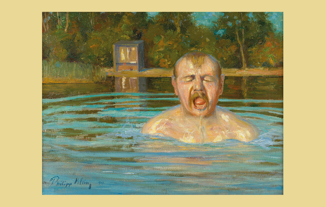 › Am 17. Juli 2025, dem 100. Todestag von Lovis Corinth, posteten die Reiss-Engelhorn-Museen ein ungewöhnliches Porträt des Malers auf ihren Social-Media-Kanälen. Zugleich verkündeten sie, dass es sich hierbei um das Plakatmotiv der im September startenden Ausstellung „Aufgetaucht!“ handelt. „Das Plakat zeigt den berühmten Impressionisten (Corinth) überraschend lebendig: klatschnass, nach Luft schnappend, gerade dem Wasser entstiegen. Gemalt hat ihn Philipp Klein, ein fast vergessener Mannheimer Künstler, dem unsere kommende Gemäldeausstellung gewidmet ist. Mit feinem Strich und viel Gespür für Atmosphäre zeigt Klein: Auch große Meister tauchen manchmal wieder auf — in Farbe, in Erinnerung, in neuen Perspektiven.“Aus der Versenkung auftauchen lassen die Reiss-Engelhorn-Museen nun eben jenen Philipp Klein. Aber wer war er? Und wie kam es dazu, dass er den berühmten Malerkollegen so unverstellt porträtierte? Die Antwort darauf: Philipp Klein, 1871 in Mannheim als Sohn eines wohlhabenden Zigarrenfabrikanten geboren, zählte selbst zum Kreis der deutschen Impressionisten und stellte gemeinsam mit internationalen Größen wie Claude Monet, Wassily Kandinsky oder Edvard Munch aus.„Nach mehr als 100 Jahren sind Bilder des Künstlers erstmals wieder in einer großen Präsentation zu bewundern, die wir gemeinsam mit dem Landesmuseum Hannover realisieren“, freut sich Andreas Krock, Leiter der Gemälde-, Grafik- und Skulpturen-Sammlung der Reiss-Engelhorn-Museen und Kurator der Sonderausstellung. 1892 verließ Klein Mannheim, um sich autodidaktisch in München der Malerei zu widmen. Hier knüpfte er enge Kontakte zur Künstlerbohème, zu der unter anderem Max Slevogt, Robert Breyer, Wassily Kandinsky und eben Lovis Corinth zählten.