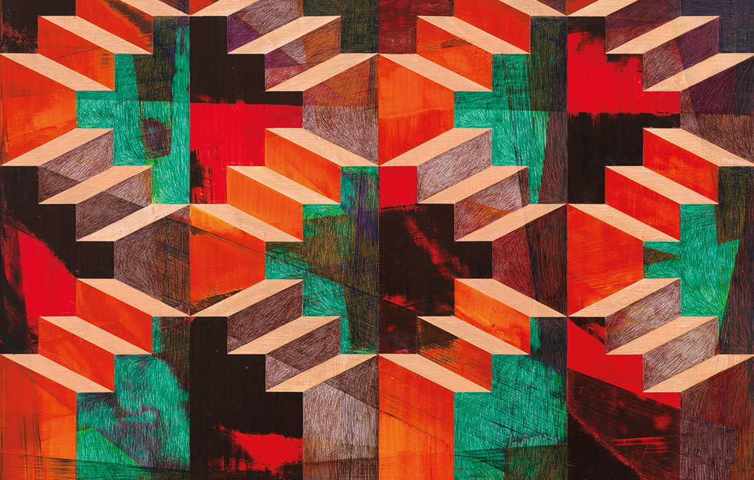 Ribbeck hat an den Kunstakademien in München, Düsseldorf und Berlin studiert. In der Hauptstadt lebt und arbeitet er noch heute. Seine Rolle als Künstler sieht er anders als die der Künstler der Rudolf-Steiner-Zeit: „Die Künstler damals waren überzeugt, mit ihren Ideen und Werken das Morgen mitzugestalten. Für die heutige Kunst sehe ich das nicht. Das ist für mich kein Grund, pessimistisch zu sein, denn inhaltlich kann man sich heute sehr frei bewegen, und man kann Ideen von früher aufgreifen, auf ihre Potenziale hin überprüfen, kombinieren und weiterspinnen.“Die Grenzen der reinen VernunftEin Querformat (28 x 40 cm) mit roten Rechtecken, Treppenstufen und grünen Wandflächen ist eine von diesen „weitergesponnenen“ Ideen, die dem Betrachter bekannt und gleichzeitig neu und fremd vorkommen. Die Stufen scheinen auf das Zentrum des Bildes zuzustreben. Dieses aber kann zu unendlich vielen Zentren erweitert werden. Was rational und klar aussieht, sprengt bei ruhiger Analyse schnell die Grenzen der reinen Vernunft.Ribbeck spielt jedoch nicht nur mit den Formen und Ideen seiner Vorbilder, er variiert auch virtuos die Maltechniken. Betrachtet man seine Arbeiten genauer, kommt man der geheimnisvollen Leuchtkraft seiner Bilder auf die Spur. Seine Kompositionen, die meist von Dualitäten wie offen/geschlossen, warm/kalt oder statisch/dynamisch beherrscht werden, bringt Ribbeck auf grundierte Holzfaserplatten auf. Die ausgemalten Flächen übertüncht er mit einer weißen Farbschicht, die dann so abgeschliffen wird, dass das Weiß in den Tälern der Pinselstriche stehen bleibt und die Grate der ursprünglichen Farbgebung freigelegt werden. Diese prismatische Struktur wird abschließend mit Kugelschreibern und Textmarkern koloriert. So erhält sie ihre innere Strahlkraft und spirituelle Aura. <Bernd Ribbeck