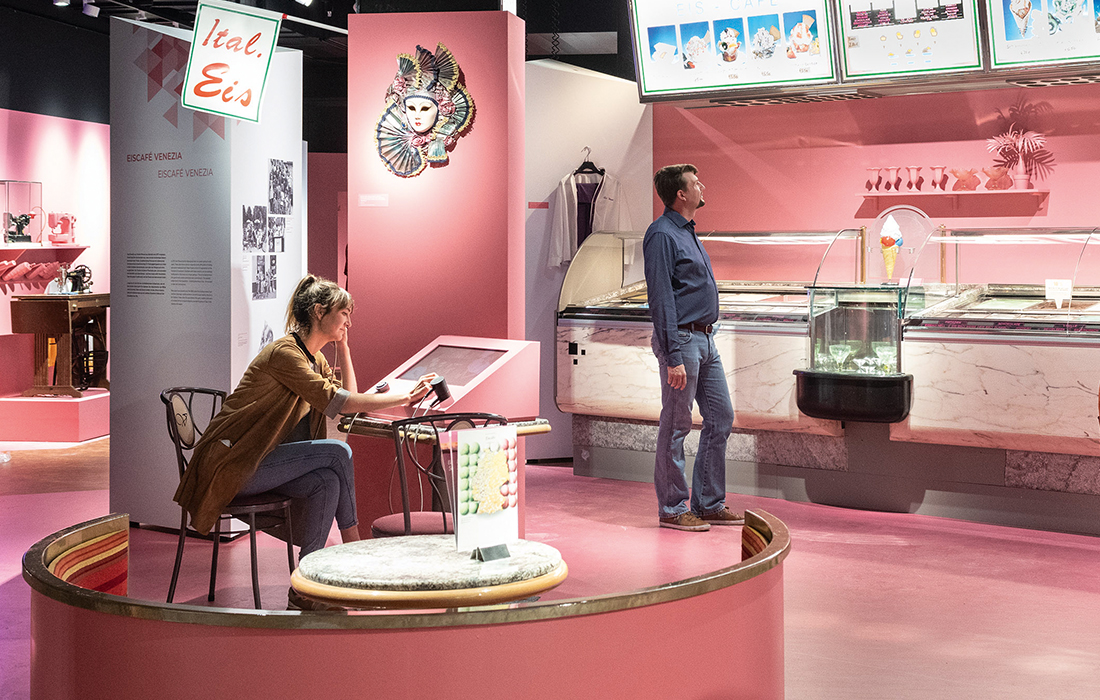 vio Miraval und seine Frau das Café auf der Schwäbischen Alb. 15 Jahre später bauten sie das „Venezia“ um. Das ursprüngliche Inventar kam ans TECHNOSEUM und ist nun in der Ausstellung zu sehen — die vier Meter lange Marmortheke inklusive. Die beiden Töchter der Miravals studieren mittlerweile Jura und Pharmazie, das Geschäft wollen sie nicht übernehmen. Vater Flavio hat dafür Verständnis, denn in der Gastronomie zu arbeiten ist anstrengend — und Zeit für die Familie hat man als Eisdielen-Besitzer oft nur dann, wenn das Wetter schlecht ist. ‹