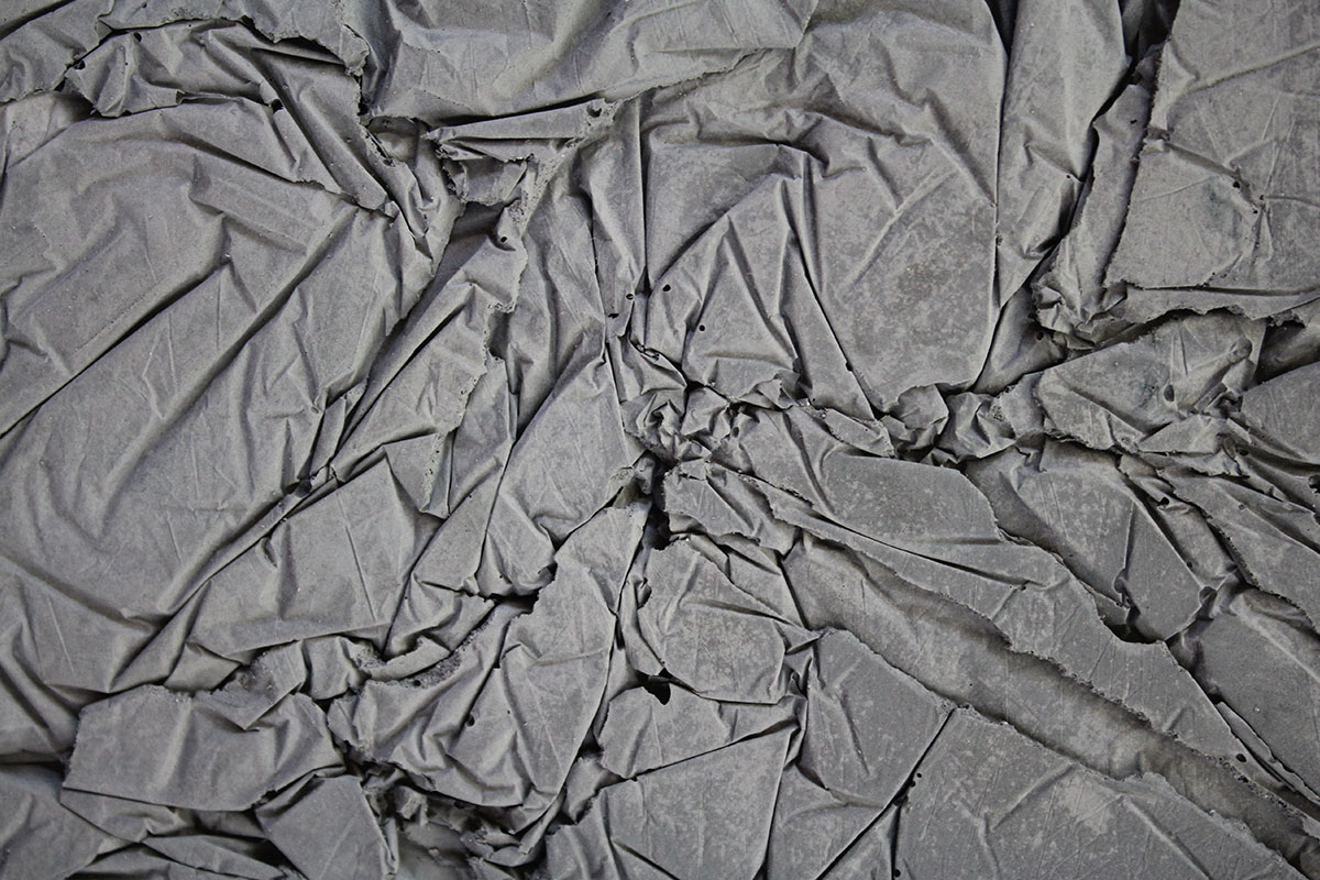 Eva Gentner, Sheets II, 2020, insitu-Wandinstallation, Zement/Pigment auf Jute, 5-teilig © Eva Gentner Wilhelm-Hack-Museum